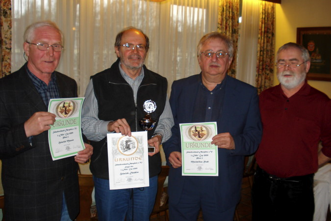 v.l.: Heinrich Maurer (2.Platz), Heinrich Däubler (1.Platz), Max Riedl (3.Platz, Seniorenreferent) und Manfred Fischer (TL)